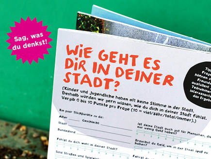 >> Kinder und Jugendliche haben oft keine Stimme in der Stadt. Deshalb interessiert uns um so mehr, wie du dich in deiner Stadt fühlst.